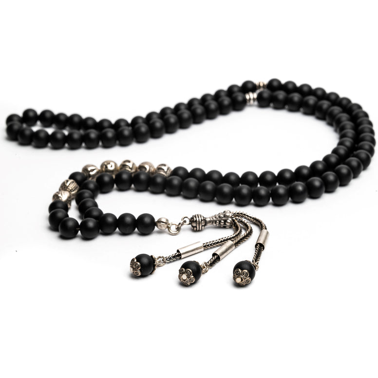 Onyx Doğaltaş 99 Habbeli Namaz Tesbihi, Topuzlu Özel Tasarım Püskül, İsme Özel