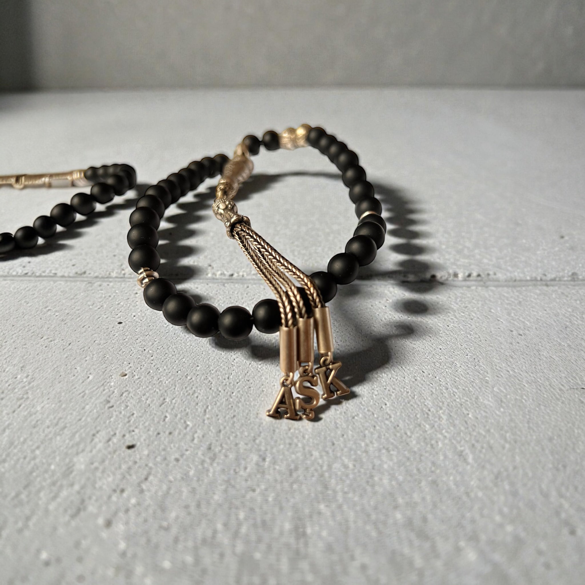 TMN I Siyah Oniks Tesbih & Bileklik I Harfli Püskül I İsim Seçenekli I AŞK Model
