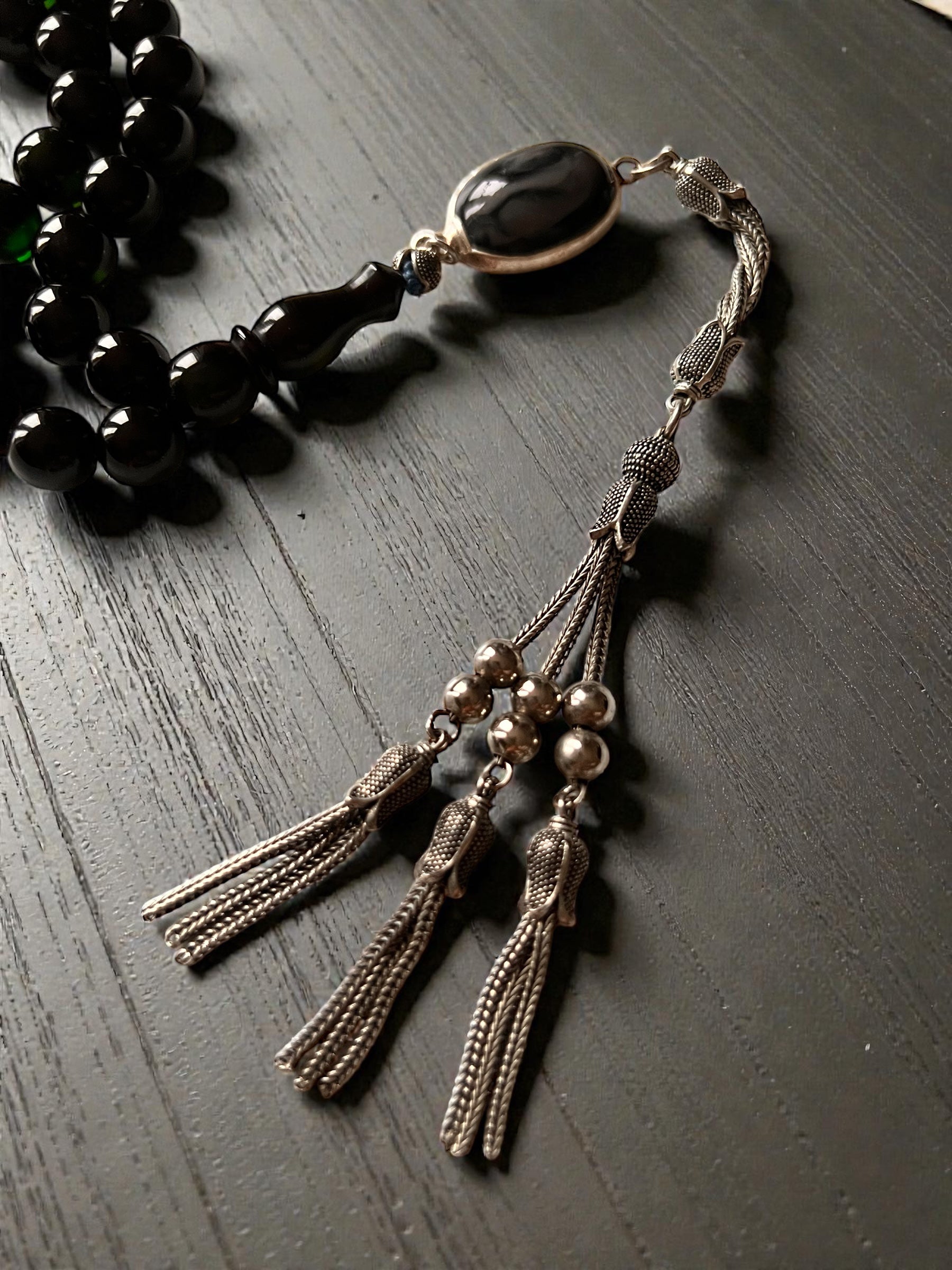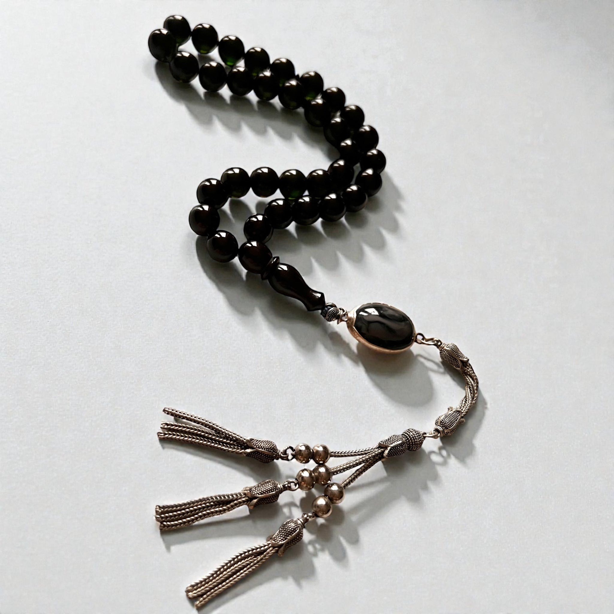 Bu tesbih, yeşilin asaletini el işçiliğiyle buluşturan özel bir modeldir.