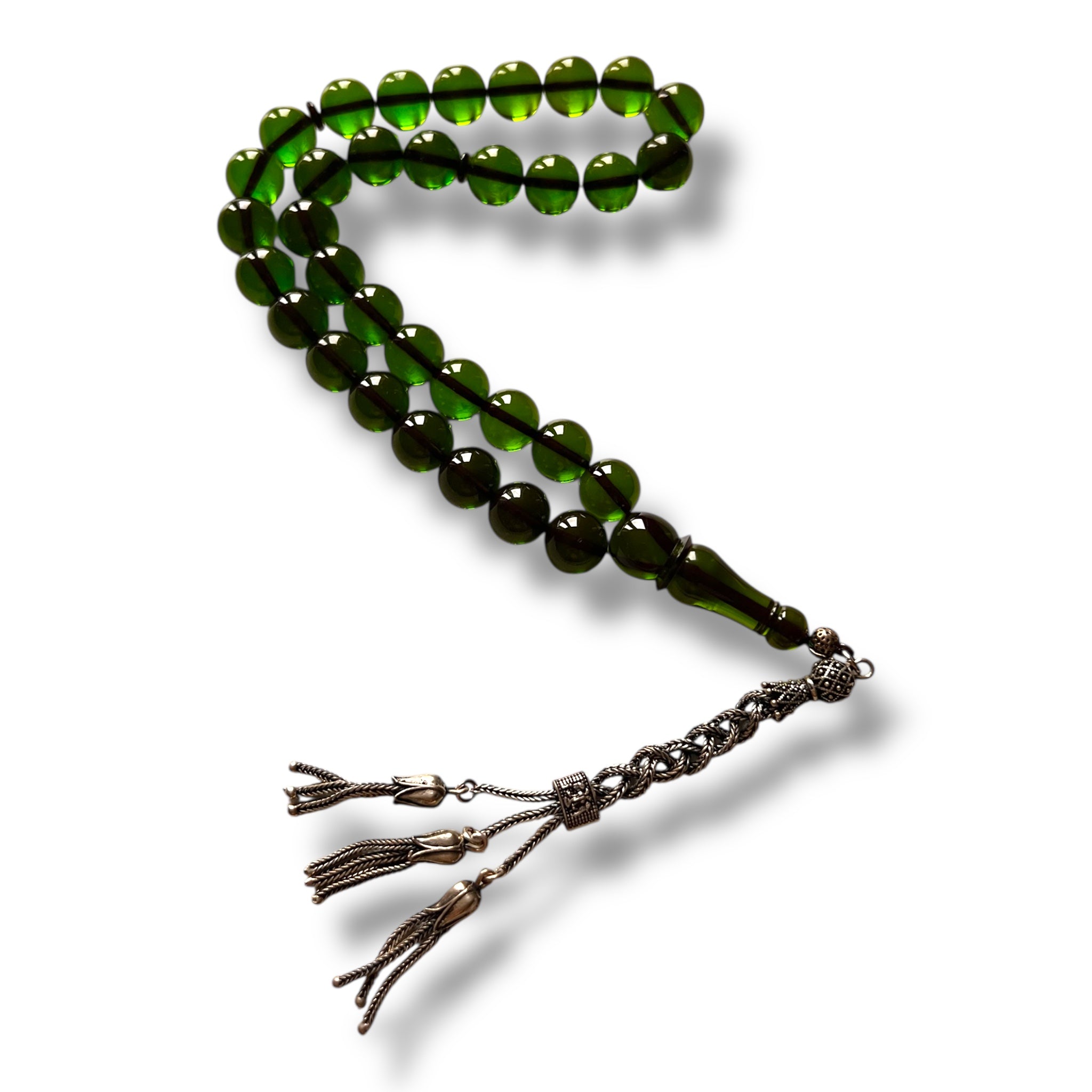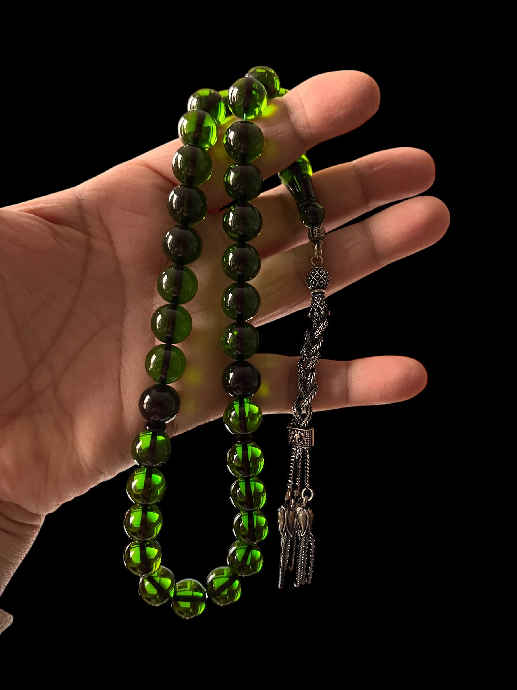 Orman Yeşili Özel Koleksiyon Tesbih - Ateş kehribar