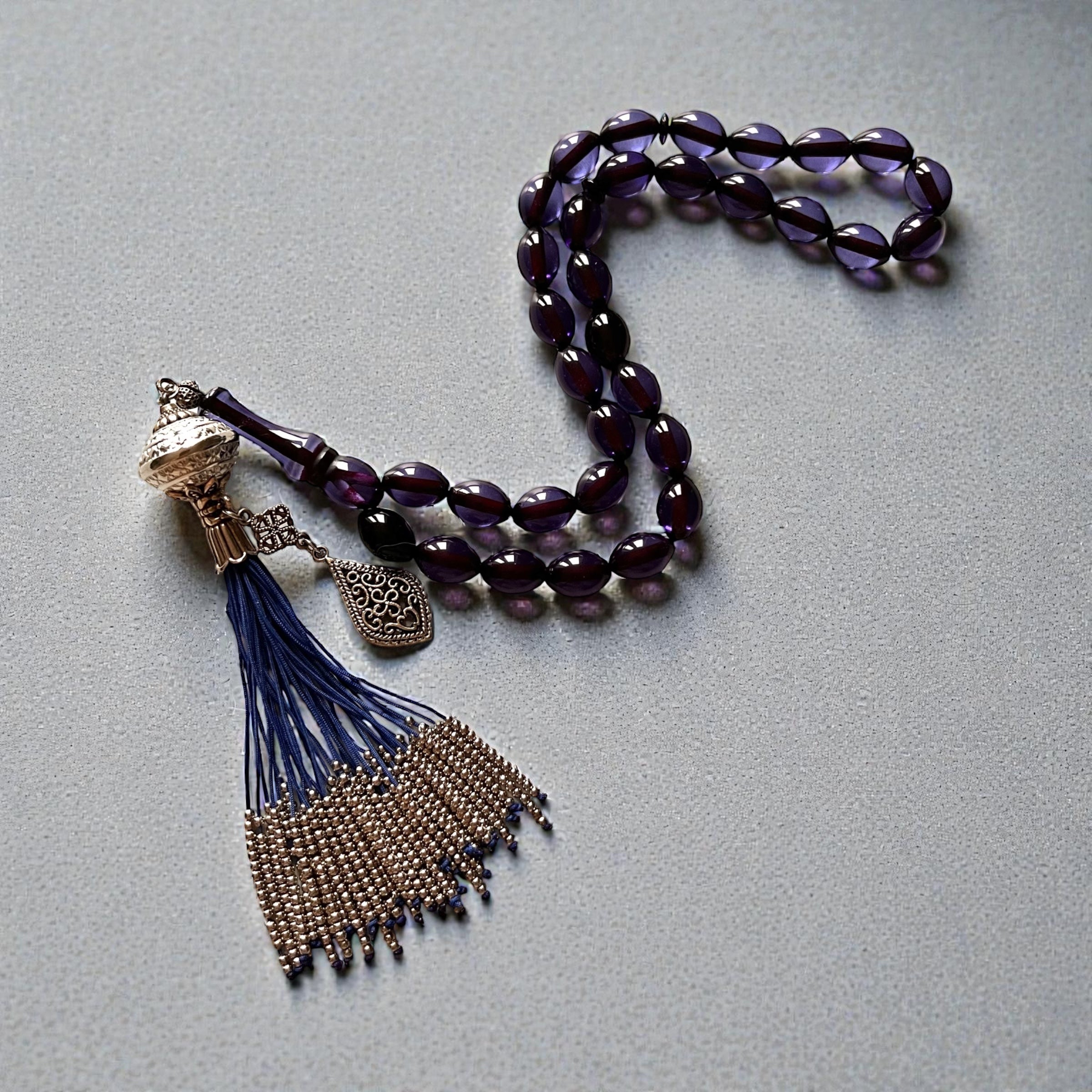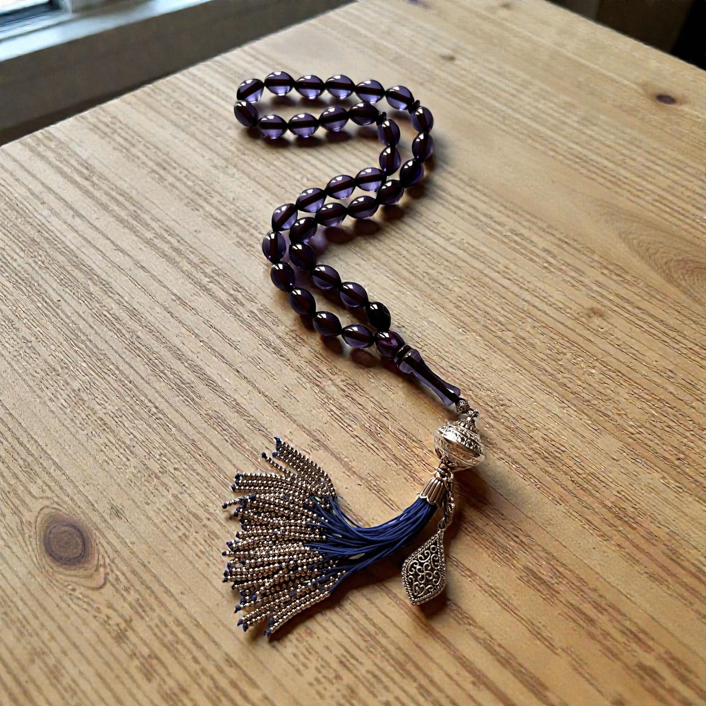 Mavi Osmanlı Zarafeti – Özel Koleksiyon Tesbih Ateş Kehribar Tesbih - Saray Püskül